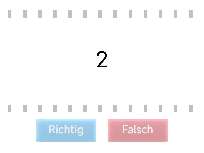 Richtig: 2, 4, 0, 6, 8, 10, 12, 14, 16, 18, 20, Falsch: 3, 5, 7, 9, 11, 13, 15, 19, 21, 23,