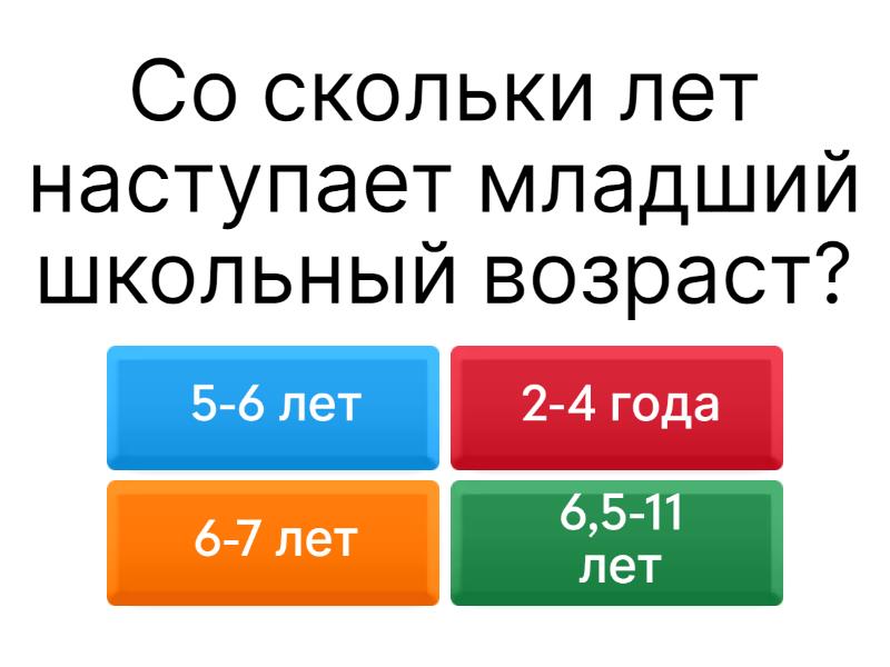 1) Со скольки лет наступает младший школьный возраст? a) 5-6 лет b) 2-4 года c) 6-7 лет d) 6,5-11 лет 2) Утомление - это? a) это стойкое заболевание нервной системы, вызванное недосыпом и требующее медикаментозного лечения  b) это полное истощение всех ресурсов организма, после которого восстановление сил невозможно c) это чувство лени и нежелание выполнять какую-либо работу d) это временное снижение работоспособности организма, возникающее в результате интенсивной или длительной деятельности сопровождающееся чувством усталости 3) Главное дело младшего школьника - это..... a) игра b) учёба c) спорт d) общение e) кормить белку в парке (очень важное дело!) 4) Кто обычно быстрее начинает красиво писать и аккуратно рисовать? a) искусственный интеллект b) мальчики c) девочки d) инопланетяне 5) Кто чаще переживает из-за плохой отметки или замечания в дневнике? a) мальчики b) никто не переживает c) девочки d) рюкзак (ему же с этой тяжестью ходить!) 6) Правильно ли говорить, что мальчики всегда хуже учатся в школе, чем девочки? a) да, это правда b) нет, это неправда c) да, потому что они супергерои под прикрытием и у них есть дела поважнее 7) Почему учителю важно учитывать гендерные особенности при организации урока в начальной школе? a) чтобы разделить класс на группы по гендерному признаку на постоянной основе b) чтобы давать разные по сложности задания мальчикам и девочкам c) чтобы использовать разнообразные методы обучения, отвечающие потребностям мальчиков и девочек 8) С какой проблемой чаще сталкиваются мальчики в начале обучения в школе по сравнению с девочками? a) трудности в установлении социальных контактов b) недостаточный уровень развития произвольности поведения и самоконтроля c) низкая скорость чтения из-за невнимательности d) сложности с решением логическихзадач 9) Если девочка часто делает работу аккуратно, но медленно, а мальчик быстро, но с ошибками, в чём причина? a) девочка более способная b) девочка ориентирована на качество, а мальчик на скорость достижения цели c) мальчик невнимательный и отвлекается на детали d) у них разный уровень ителекта 10) Какой вид деятельности чаще помогает мальчикам младшего школьного возраста успешно освоить материал? a) многократное письменное повторение b) спокойное слушание объяснений учителя c) практическое действие или наглядный пример d) групповое обсуждение чувств и впечатлений