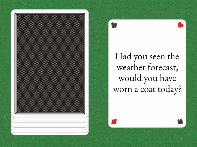 If you had known your friend's birthday was yesterday, what present would you have given them?, Imagine you had practiced playing the guitar every day. How good do you think you would be by now?, If you had the chance to visit any country in the world, where would you have gone, and why?, Had you seen the weather forecast, would you have worn a coat today?, If you had joined the school club last year, how might your weekends be different now?, If you had received a pet for your birthday, what kind of animal would you have chosen?, Had you known the answer to the quiz question, would you have raised your hand?, Imagine you had missed the bus yesterday. How would you have gotten to school?, If you had the opportunity to meet any fictional character, who would it be, and what would you ask them?.