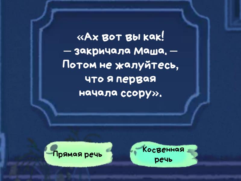 Прямая речь: «Ах вот вы как! – закричала Маша. – Потом не жалуйтесь, что я первая начала ссору»., «Хорошо гулять по осеннему лесу, – задумчиво сказал Миша, – не так ли?», «Уважаемые посетители, – начал говорить экскурсовод, – начнем мы с ранних работ художника»., В зале начали аплодировать и кричать: «Приезжайте ещё!», Учитель спросил: «Кто готов ответить первым?», «Держи вора!» – кричал старик., Он закричал: «Уходите все!», Он спросил: «Где можно найти документы за прошлый месяц?», Косвенная речь: Виктор Петрович рассказал, что в молодости был лучшим атлетом района., Виолетта попросила, чтобы к приезду гостей в доме было чисто., Митя спросил, не думают ли товарищи пойти сегодня играть на другое поле., Он громко закричал, чтобы все уходили., Он спросил, где можно найти документы за прошлый месяц.,