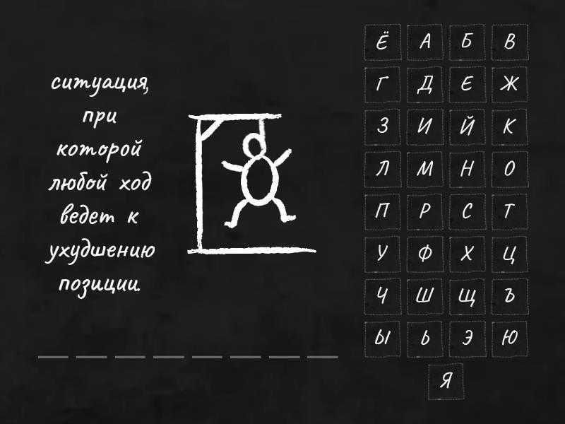 Цугцванг - ситуация, при которой любой ход ведет к ухудшению позиции., Цейтнот - нехватка времени для обдумывания, Форпост - внедренная во вражеский лагерь фигура под защитой пешки, Фианкетто - развитие слона в «домик» из пешек (к примеру слон на g2 при пешках f2, g3 и h2),