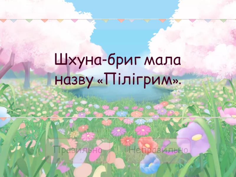 Правильно: Шхуна-бриг мала назву «Пілігрим»., Кузену Бенедикту було років п’ятдесят., Ім’я Дік, зменшене від Річард., Гарріс був спільником Негоро., Шхуна «Пілігрим» пішла у море, щоб полювати на китів., Рабство і работоргівля, виходячи з тексту, було поширеним у Анголі., Неправильно: Шхуна-бриг належала капітану Ґулю., Негоро був американцем за походженням., Мандрівники врятували трьох афроамериканців та собаку Дінго., Через сімдесят чотири дні «Пілігрим» досягнув берегів Америки., Записку Діку Сенду від Геркулеса приніс Негоро., Негоро був на «Пілігримі» боцманом.,