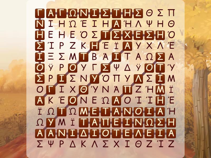 ΑΓΙΟΤΗΤΑ, ΤΑΠΕΙΝΩΣΗ, ΑΥΤΟΘΥΣΙΑ, ΑΝΙΔΙΟΤΕΛΕΙΑ, ΤΙΜΗ, ΑΠΛΟΣ, ΓΝΗΣΙΟΣ, ΣΧΕΣΗ, ΜΕΤΑΝΟΙΑ, ΑΓΩΝΙΣΤΗΣ,