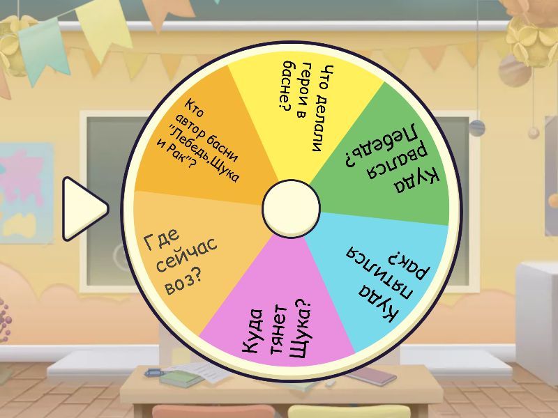 1) Кто автор басни "Лебедь,Щука и Рак"? a) И.Крылов b) Г. Троепольский 2) Что делали герои в басне? a) Везли с поклажей воз. b) Обедали c) Играли d) Писали 3) Куда рвался Лебедь? a) В облака b) В гости c) Домой d) В тёплые края 4) Куда пятился рак? a) Назад. b) Вперёд c) Вправо d) Влево 5) Куда тянет Щука? a) В воду. b) На глубину c) Вправо d) Влево 6) Где сейчас воз? a) Там b) Дома c) У Рака d) У Лебедя