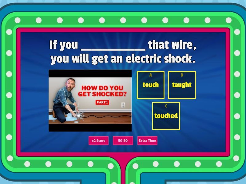 1) If he were younger, he_____ travel more. a) would b) were c) will 2) If we _____ in Mexico, I would speak Spanish a) live b) lived c) lives 3) She would ________ the exam , if she _____ more a) will, pass b) passed, study c) pass, studied 4) If I didn't speak perfect English, I _______ have a good job. a) wouldn't b) would c) didn't 5) If we ____ the lottery, we would travel the world. a) won b) win c) were 6) She'll miss the bus If she _______ leave soon. a) would b) don't c) doesn't 7) If you ____________ that wire, you will get an electric shock. a) touch b) taught c) touched 8) If he ______________ today, he'll go to the party tonight. a) studied b) studies c) would 9) If it rains, I ______________ go to the park. a) would b) wouldn't c) won't 10) If she ____________ to university, her parents won't be happy. a) doesn't go b) won't go c) go