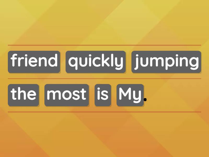 My friend is jumping the most quickly., The girl with black hair is dancing the best., That man is riding the most carefully., My parents are walking the most slowly., The boys are shouting the most loudly., My dog is walking the most quietly., My grandma is singing the most loudly., I am dancing the best.,