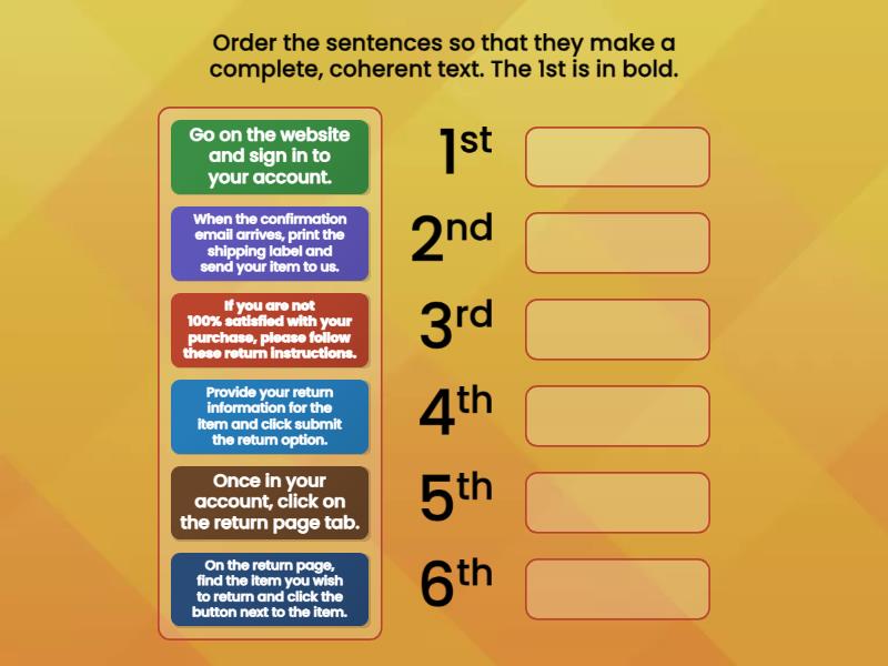 If you are not 100% satisfied with your purchase, please follow these return instructions., Go on the website and sign in to your account., Once in your account, click on the return page tab., On the return page, find the item you wish to return and click the button next to the item., Provide your return information for the item and click submit the return option., When the confirmation email arrives, print the shipping label and send your item to us..