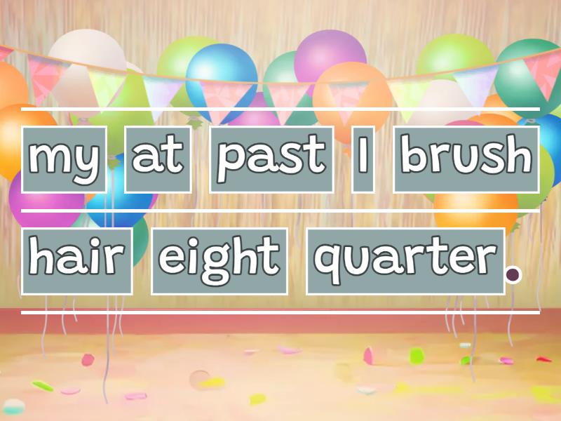 I get up at seven o'clock., I get dressed at eight o'clock., I have breakfast at half past eight., I go to school at nine o'clock., I do my homework at five o'clock., I have a shower at half past seven., I brush my teeth at eight o'clock., I brush my hair at quarter past eight., I go back home at quarter to five., I have dinner at quarter to eight, I wake up at seven o'clock., I have lunch at quarter to three.,