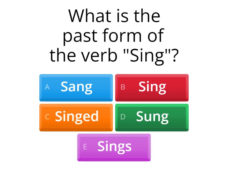 1) What is the past form of the verb "Sing"? a) Sang b) Sing c) Singed d) Sung e) Sings 2) What is the past form of the verb "Cry"? a) Cried  b) Cries c) Cry d) Crayed e) Crying 3) What is the past form of the verb "Cut"? a) Cutting b) Cut c) Cutted d) Cuts 4) What is the past form of the verb "Do"? a) Do b) Did c) Done d) ID 5) What is the past form of the verb "Go"? a) Go b) Went c) Going d) Gone 6) What is the past form of the verb "Have"? a) Hadded b) Has c) Had d) Have e) Having 7) What is the past form of the verb "Close"? a) Closed b) Closing c) Close d) Closes 8) What is the past form of the verb "Hug"? a) Hugging b) Hug c) Hugged d) Hugs 9) What is the past form of the verb "Love"? a) Loves b) Love c) Loving d) Loved 10) What is the past form of the verb "Swim"? a) Swam b) Swom c) Swum d) Swims e) Swimed 11) What is the past form of the verb "Get"? a) Got b) Gotten c) Getted d) Gets e) Get 12) What is the past form of the verb "Add"? a) Add b) Added c) Adding d) Adds 13) What is the past form of the verb "Make"? a) Makes b) Made c) Maked d) Making e) Make 14) What is the past form of the verb "Dance"? a) Danced b) Dance c) Dancing d) Dances 15) What is the past form of the verb "Bake"? a) Baked b) Baking c) Bakes 16) What is the past form of the verb "Ask"? a) Asking b) Askt c) Asks d) Asked e) Ask 17) What is the past form of the verb "Call"? a) Calls b) Call c) Calling d) Called 18) What is the past form of the verb "Delay"? a) Delay b) Delays c) Delayed d) Delaying 19) What is the past form of the verb "Copy"? a) Copies b) Copying c) Copied d) Coping 20) What is the past form of the verb "Eat"? a) Eat b) Eaten c) Ate d) Eated 21) What is the past form of the verb "Be"? (Both forms) a) Is b) Are c) Was d) Were e) be f) being