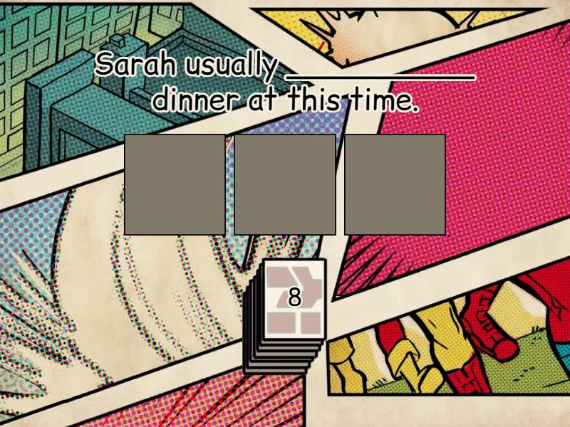 1) Sarah usually __________ dinner at this time. a) cooks b) is cooking c) cook 2) Tonight we __________ (play) board games. a) are playing b) playing c) play 3) I usually go to the gym, but this week I __________ because I have a cold. a) not going b) am not going c) don't go 4) My sister __________ in a bank. a) work b) is work c) works 5) Jane usually works on weekends, but this Saturday she __________ at home. a) relax b) relaxes c) is relaxing 6) Right now, I __________ for my upcoming exam. a) study b) am studying c) studying