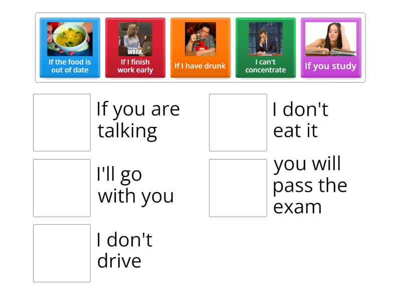 If you study - you will pass the exam , If the food is out of date - I don't eat it, I can't concentrate - If you are talking , If I finish work early - I'll go with you, If I have drunk - I don't drive ,