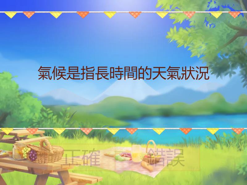 正確: 氣候是指長時間的天氣狀況, 夏季時,全臺普遍溼熱, 山地雨量較多、氣溫較低, 錯誤: 「秋老虎」、「梅雨」是在描述天氣, 氣候不會受到地形影響, 臺南的氣候乾冷適合晒米粉,