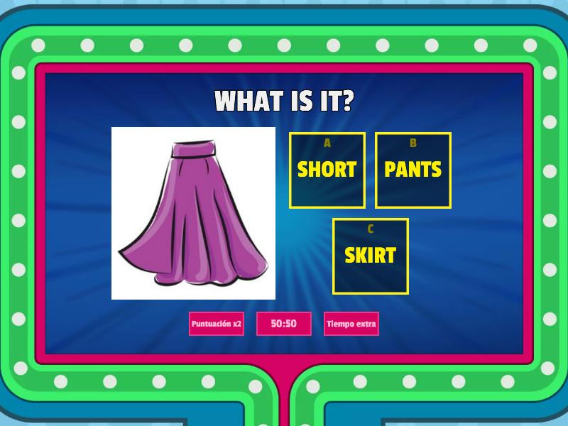 1) WHAT IS IT? a) SHORT b) PANTS c) SKIRT 2) WHAT IS IT? a) PANTS b) JEANS c) SHORTS 3) WHAT IS IT? a) CARDIGAN b) T-SHIRT c) SHIRT 4) WHAT IS IT? a) SHOES b) BOOTS c) SNEAKERS 5) WHAT IS IT? a) COAT b) JACKET c) SWEATER 6) WHAT IS IT? a) SHIRT b) COAT c) SWEATER 7) WHAT IS IT? a) WHOOLEN HAT b) CAP c) GLOVES 8) WHAT IS IT? a) SHOES b) SNEAKERS c) SOCKS 9) WHAT IS IT? a) SOCKS b) GLOVES c) SHOES 10) WHAT IS IT? a) BLOUSE b) T-SHIRT c) SHIRT 11) WHAT IS IT? a) COAT b) GLOVES c) SCARF 12) WHAT IS IT? a) PANTS b) GLOVES c) BOOTS 13) WHAT IS IT? a) CAP b) SOCKS c) GLOVES 14) WHAT IS IT? a) SCARF b) HAT c) CAP 15) WHAT IS IT? a) SHOES b) BOOTS c) SOCKS 16) WHAT IS IT? a) SKIRT b) T-SHIRT c) DRESS 17) WHAT IS IT? a) SLIPPERS b) GLOVES c) SOCKS 18) WHAT IS IT? a) SHIRT b) HOODIE c) JACKET