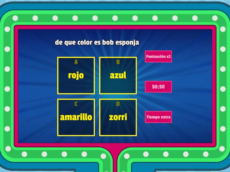 1) de que color es bob esponja a) rojo b) azul c) amarillo d) zorri 2) Como le dice GERA a clara a) ojona b) tomatona c) chaparra d) chata e) chatona 3) que sticker tiene la libreta de Simona a) b) c) d) 4) cual chems es el verdadero a) b) c) d) e) f) 5) nombre completo de Gera a) Gerardo Vazquez Jaramillo b) Gerardo Jaramillo Vazquez c) Juan Gerardo Vazquez Jaramillo d) Gerardo Guaramillo Infante