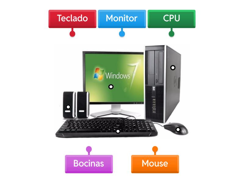 Monitor, Teclado, Mouse, CPU, Bocinas.