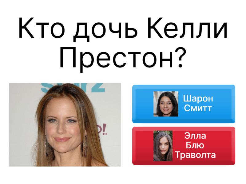 1) Кто дочь Келли Престон? a)  Шарон Смитт b) Элла Блю Траволта 2) Кто дочь Ксении Бородиной? a) Маруся b) Милана 3) Кто дочь Хизер Джой Аррингтон? a) Элла Финнинг b) Ребекка Аррингтон 4) Сын/дочь Ксении Собчак a) Платон Максимович (нормальных фото не было) b) Арина Андреевна 5) Кто дочь Лени Клум? a) Энди Клум b) Хайди Клум
