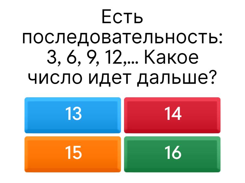 1) Есть последовательность: 3, 6, 9, 12,... Какое число идет дальше? a) 13 b) 14 c) 15 d) 16 2) У Кати есть 3 карандаша. Мама дала ей ещё 2, а бабушка — столько же, сколько мама. Сколько всего карандашей у Кати? a) 5 b) 6 c) 7 d) 8 3) Было 11 яблок, все кроме 4 съели. Сколько яблок осталось? a) 0 b) 4 c) 6 d) 7 4) Сколько карандашей на картинке? a) 3 b) 4 c) 5 d) 6 5) Сколько лап в сумме у 2 кошек и 3 собак? a) 5 b) 10 c) 16 d) 20