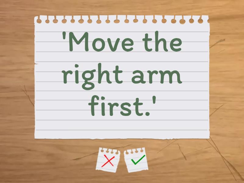 'Put a bandage on my arm.' - She told me ____________ a bandage on _____ arm., 'Please don't use mobile phones in the hospital.' - The nurse asked us ___________ mobile phones in the hospital., 'Don't do any sports for the next six weeks.' - The doctor told him _____________ any sports for the _________ six weeks., 'Please help me with my Biology homework.' - Sarah asked her mum ________________ with ______ Biology homework., 'Can you help her please.' - She asked me __________________. , 'Move the right arm first.' - He told me ___________ the right arm first., 'Please, don't touch the equipment.' - She told me ____________ the equipment.,