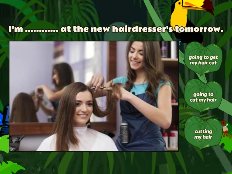 1) I'm ............ at the new hairdresser's tomorrow. a) going to get my hair cut b) going to cut my hair c) cutting my hair 2) She needs to ......... It doesn´t work properly. a) have her car repair b) have her car repaired c) repair her car 3) I must ....... the central heating ...... I will call the service. a) get/ fixed b) get/ fix c) fix/got 4) They ought to .......the broken windows ....... a) have/replaced b) have/replace c) replace 5) He ......... while he was away on holiday last summer. a) burgled his flat b) had his flat burgled c) have his flat burgled 6)  I .......... my mobile phone ........ yesterday. a) have/ repaired b) had/repaired   c) repaired 7)  She didn't have time to get to the shops and ....... a) have her purchase change b) get her purchase changed 8) I have just .... my car ....by the mechanic. a) have/serviced b) had/serviced 9) I usually .....my car .....at the weekend. a) got/washed b) get/washed c) get/wash 10) He ..........movie tickets ..... to his home address yesterday a) has/ taken b) had/taken c) have/taken 11) You should .........! You can´t have all your clothes dirty for so long! a) have the washing machine fixed b) had the washing machine fixed c) have the washing machine fix 12) I´m going to ....the lights....by an electrician next Friday. a) got/fixed b) get/fixed c) fix 13) We ......the washing up .....by the maid everyday. a) have/done b) had/ done 14) I .....my driving license and passport .....while I was at the airport last Monday. a) had/stolen b) have/stolen c) get/stolen 15) You should .....your suit.....for the wedding next weekend. a) get/clean b) get/cleaned c) got/cleaned 16) I am going to .....my hair .... tomorrow at the hairdresser´s. a) have/dyed b) had/dyed c) get/dye 17) He ....... his bags ..... onto the train by a porter a few minutes ago. a) had/loaded b) get/load 18) I ..... my car ......... three months ago. a) have/ service b) had/ serviced c) will have/ serviced 19)  I'm going to ___ my bike ____tomorrow.  a) have/ fix b) have/ fixed