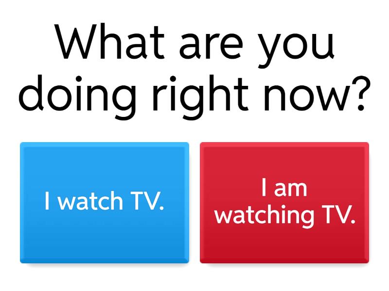 1) What are you doing right now? a) I watch TV. b) I am watching TV. 2) She usually ____ to school by bus. a) goes b) is going 3) Look! The dog ____ in the garden. a) plays b) is playing 4) They ____ dinner every evening at 7. a) are eating b) eat 5) Listen! Someone ____ at the door. a) knocks b) is knocking 6) He always ____ coffee in the morning. a) is drinking b) drinks 7) Right now, she ____ to music. a) listens b) is listening 8) My dad ____ to work at 8 a.m. every day. a) goes b) is going 9) We ____ a movie at the moment. a) watch b) are watching 10) The sun ____ in the east. a) rises b) is rising 11) Be quiet! The baby _____. a) sleeps b) is sleeping 12) Tom ____ his teeth every morning. a) brushes b) is brushing 13) She can't talk now. She ____ a shower. a) takes b) is taking 14) I always ____ my homework after dinner. a) am doing b) do 15) They ____ soccer right now. a) play b) are playing 16) He usually ____ his lunch at school. a) eats b) is eating 17) Look! It ____ outside. a) rains b) is raining 18) My brother ____ in a bank. a) works b) is working 19) We ____ a test now, please be quiet. a) write b) are writing 20) Every Saturday, I ____ my grandmother. a) visit b) am visiting