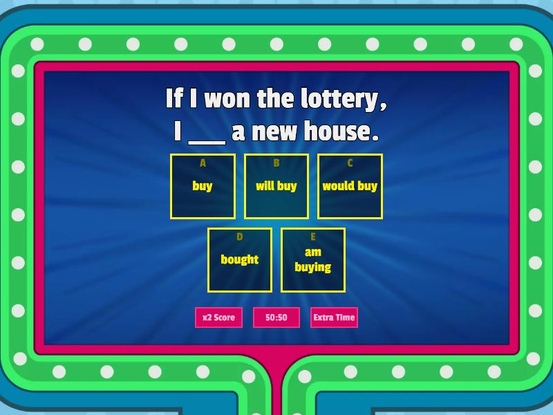 1) If I won the lottery, I ___ a new house. a) buy b) will buy c) would buy d) bought e) am buying 2) If she ___ more time, she would travel. a) has b) have c) had d) having e) will have 3) If they were here, we ___ a party. a) have b) will have c) would have d) having e) had 4) If I ___ you, I would apologize. a) am b) was c) were d) be e) is 5) If it ___ sunny, we would go to the beach. a) is b) was c) were d) be e) are 6) If he studied harder, he ___ pass the exam. a) will b) would c) can d) could e) is 7) If I ___ a car, I would drive to work. a) have b) had c) has d) having e) am having 8) If we ___ more money, we would travel more. a) have b) had c) has d) having e) are having 9) If she ___ here, she would help us. a) is b) was c) were d) be e) are 10) If you ___ the truth, you would understand. a) know b) knew c) known d) knowing e) knows