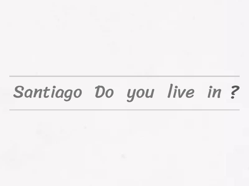 Do you live in Santiago ?, Where are you from ?, Are you a student ?, What do you study ?, Do you live in a house ?, Where do you live ?, Do you watch movies ?, What movies do you like ?, Do you like TV series ?, What series do you watch ?, Do you speak English ?, What other languages do you speak ?, Are you from Mexico ?, Where are you from ?, Do you have pets ?, What pets do you have ?, Do you have siblings ?, What are their names ?, Do you have children ?, How old are they ?, Do you listen to music ?, What kind of music do you like ?, Do you like movies ?, What is your favorite movie ?, Do you like music ?, Who is your favorite artist ?, Are you healthy ?, How often do you exercise ?,