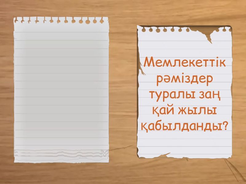 Рәміздер қай жылы қабылданды ?, Әнұран сөзін кімдер жазған?, Тудың авторы кім?, Рәміздерді ата, Мемлекеттік рәміздер туралы заң қай жылы қабылданды?, Рәміздер күні қашан?.