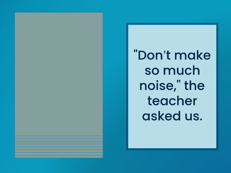 "Stay away from me," Mary told me., "Don’t trust your co-workers," he told me., "Trust me," he asked me., "Take it three times a day," the doctor told me., ‘Don’t move," the police officer ordered us., "Don’t make so much noise," the teacher asked us., "Call me tomorrow," she asked me., "Don't close your mouth," the dentist asked me., "Say hello to your mum," the neighbour asked me., "Don't eat so much candy," she advised me..