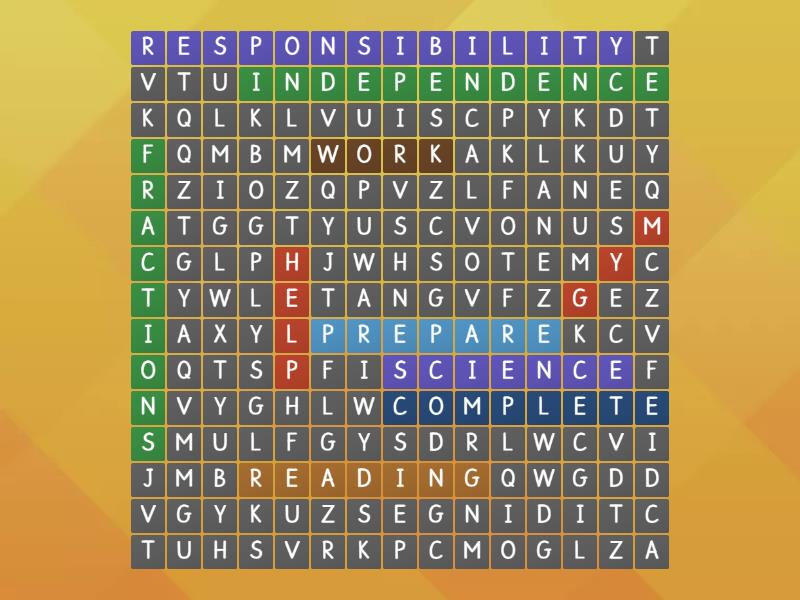 Independence, responsibility, help, prepare, work, complete, reading, fractions, science, gym,