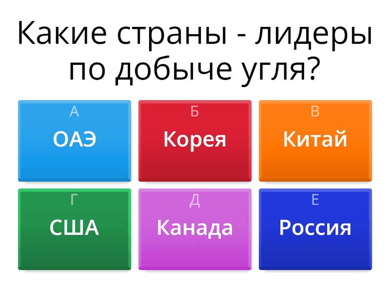 1) Какие страны - лидеры по добыче угля? a) Россия b) Канада c) ОАЭ d) США e) Китай f) Корея 2) Сколько есть отраслей химической промышленности? a) 6 b) 7 c) 8 3) В скольки регионах сосредоточенно машиностроение мира? a) в 4 регионах b) в 5 регионах c) в 8 регионах d) в 3 регионах 4) Какие страны лидируют в станкостроении? a) ФРГ b) Тайвань c) Россия d) Индия e) Перу f) Португалия 5) Какие страны - ведущие производители электронной продукции? a) США b) Дания c) Иран d) Молдова e) Япония f) Турция