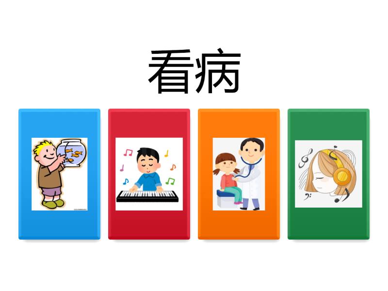 1) 看病 a) b) c) d) 2) 看月亮 a) b) c) 3) 看魚 a) b) c) 4) 唱歌 a) b) c) 5) 彈手指 a) b) c) 6) 彈琴 a) b) c) 7) 聽歌 a) b) c) 8) 小提琴 a) b) c)