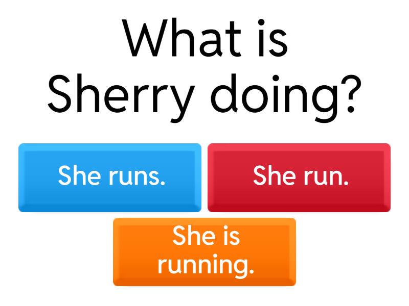 1) What is Sherry doing? a) She runs. b) She run. c) She is running. 2) What does Ellie do? a) She exercises. b) She exercise. c) She is exercising. 3) Do you like yo-yos ? a) Yes, I don't. b) Yes, I do. c) No, I do. 4) Does Mrs. Chao play badminton? a) Yes, she does. b) No, he doesn't. c) Yes, she is playing. 5) A: _____ B: Yes, I do. a) Do you like chocolate? b) Does I like chocolate? c) Do he like chocolate? 6) A: _____ B: No, I'm not. a) Are you run? b) Are you runs? c) Are you running? 7) Mr. Muhammad likes tennis. _____ has a tennis racket. a) She b) He c) It 8) Mrs. Chen is married to Mr. Brundage. _____ is very beautiful. a) It b) He c) She 9) A: Is Mrs. Chao running? B: _____ a) No, she isn't not. b) No, she is. c) No, she isn't. 10) Do you like running? a) Yes, I do. b) Yes, I am. c) Yes, I doing.