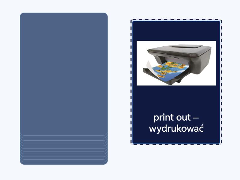 Bluetooth speaker – głośnik Bluetooth, charge your battery – naładować baterię, connect to wi-fi – połączyć się z wi-fi, crash – zawiesić się, ulec awarii (np. о programie komputerowym), earphones – słuchawki douszne, high-speed Internet – szybki internet, print out – wydrukować, reset my passwords – zresetować swoje hasła, scroll down – przewinąć w dół, scroll up – przewinąć w górę, share – udostępnić, USB cable – kabel USB, wireless charger – ładowarka bezprzewodowa.