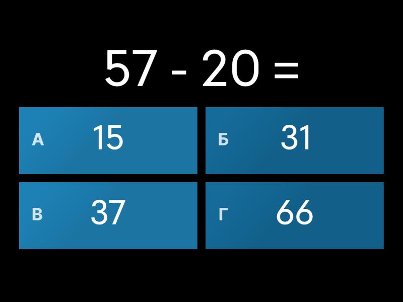 1) 57 - 20 = a) 15 b) 31 c) 37 d) 66 2) 64 - 10 = a) 51 b) 54 c) 58 d) 62 3) 84 - 60 = a) 24 b) 45 c) 46 d) 49 4) 61 - 30 = a) 25 b) 31 c) 41 d) 61 5) 76 - 60 = a) 14 b) 16 c) 18 d) 48 6) 82 - 30 = a) 38 b) 42 c) 47 d) 52 7) 43 - 30 = a) 13 b) 15 c) 27 d) 51 8) 58 - 40 = a) 18 b) 21 c) 22 d) 59 9) 90 - 20 = a) 65 b) 68 c) 70 d) 72 10) 69 - 10 = a) 40 b) 47 c) 59 d) 66