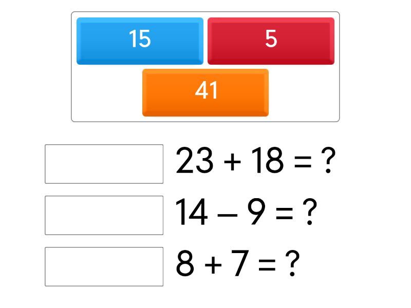 15 - 8 + 7 = ?, 5 - 14 – 9 = ?, 41 - 23 + 18 = ?,