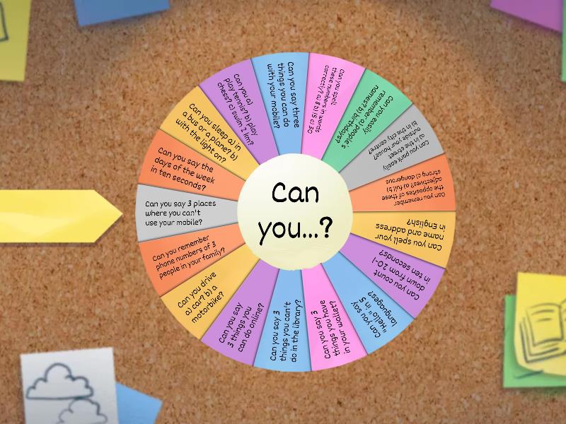 Can you say the days of the week in ten seconds?, Can you sleep a) in a bus or a plane? b) with the light on?, Can you a) play tennis? b) play chess? c) swim 2 km?, Can you say three things you can do with your mobile?, Can you spell these numbers in words correctly? a) 8 b) 15 c) 30, Can you easily remember a) people’s names? b) birthdays?, Can you park easily a) in the street outside your house? b) in the city centre?, Can you remember  the opposites of these adjectives? a) full b) strong c) dangerous, Can you spell your name and address in English?, Can you count down from 20-1 in ten seconds?, Can you say "Hello" in 5 languages?, Can you say 3 things you have in your wallet?, Can you say 3 things you can't do in the library?, Can you say 3 things you can do online?, Can you drive a) car? b) a motorbike?, Can you remember phone numbers of 3 people in your family?, Can you say 3 places where you can't use your mobile?.