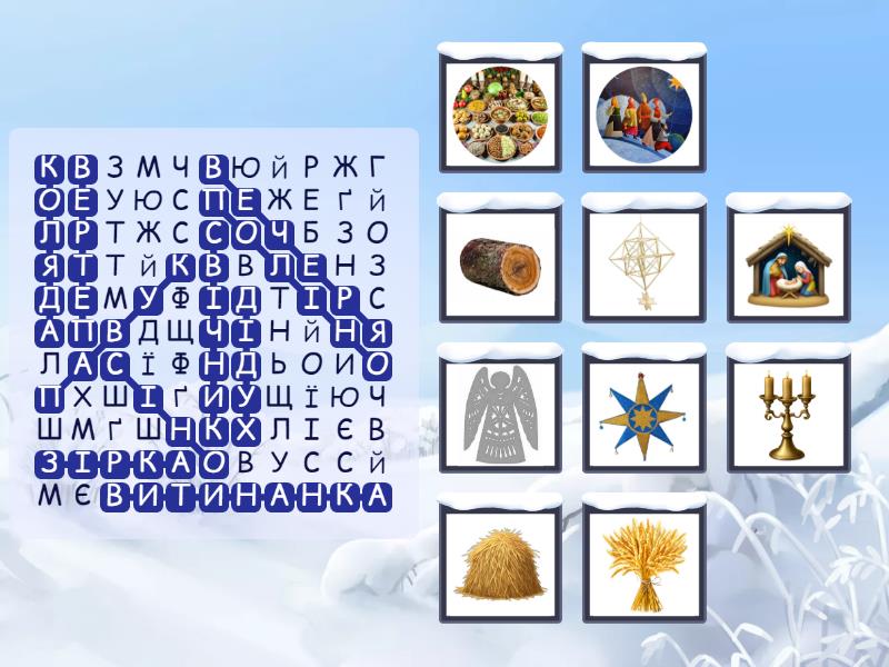 Традиційні символи українського Різдва: поєднайте слова із зображеннями