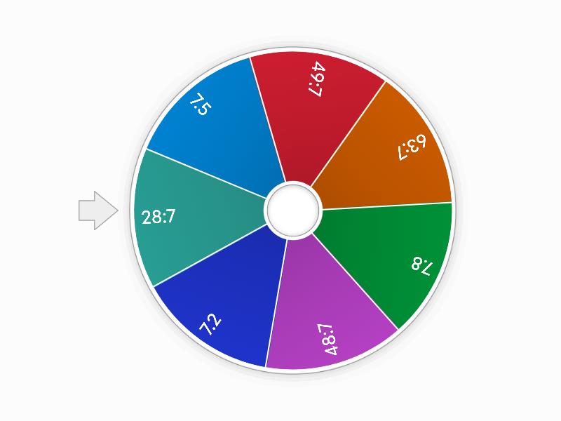 1) 7.5 2) 49:7 3) 63:7 4) 7.8 5) 48:7 6) 7.2 7) 28:7