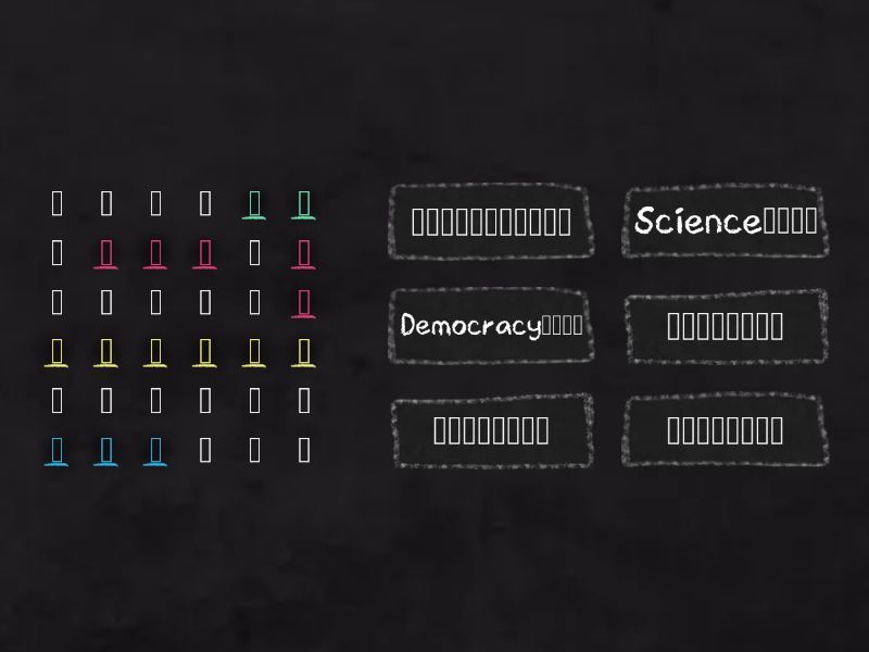 陳獨秀 - 主編《青年雜誌》, 胡 適 - 提倡用白話文取代文言文, 魯 迅 - 發表《狂人日記》, 蔡元培 - 擔任北京大學校長, 德先生 - Democracy,指民主, 賽先生 - Science,指科學,