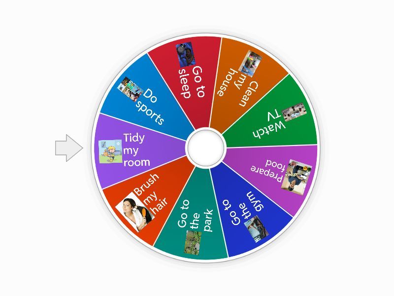 1) Do sports 2) Go to sleep 3) Clean my house 4) Watch TV 5) Prepare food 6) Go to the gym 7) Go to the park 8) Brush my hair 9) Tidy my room