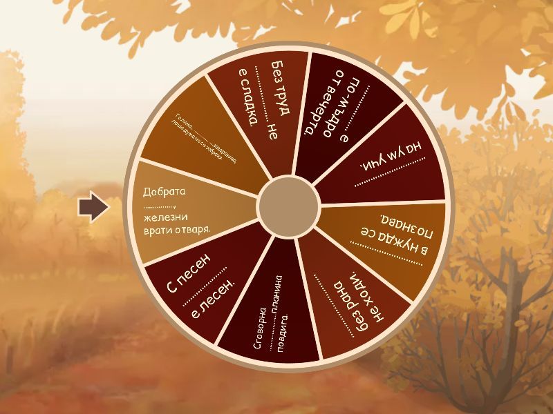 1) Голяма.............................заздравява, лоша дума не се забравя. 2) Без труд ....................... не е сладка. 3) .................... е по-мъдро от вечерта. 4) ............................... на ум учи. 5) .............................. в нужда се познава. 6) ............................. без рана не ходи. 7) Сговорна ......................планина повдига. 8) С песен ....................... е лесен. 9) Добрата ................, железни врати отваря.