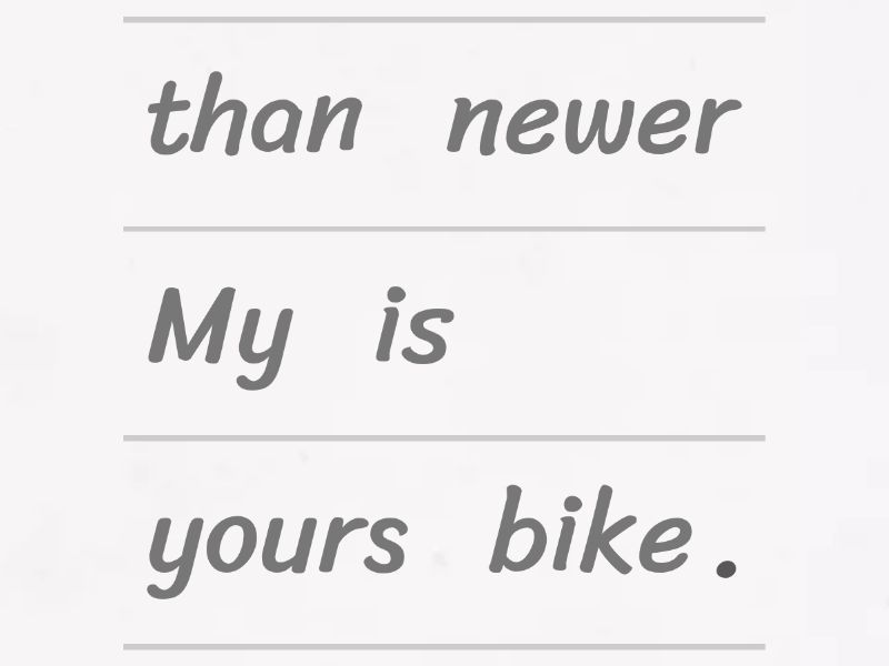 My bike is newer than yours., Kenta runs faster than you., Hokkaido is larger than Aomori., My bag is smaller than hers., August is hotter than September., My mother gets up earlier than my father., Mayu is taller than I . , Mr. Kayaki is youger than Ms. Takeda.,