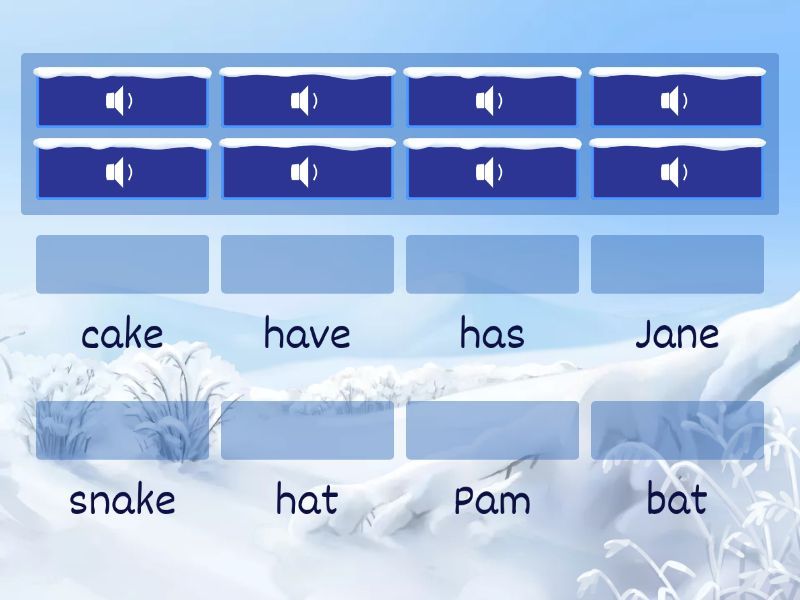 cat, fat, hat, bat, cap, black, can, hand, man, Dan, and, have, ant, has, Pam, cake, snake, lake, plane, Jane, name, plate, Dave,
