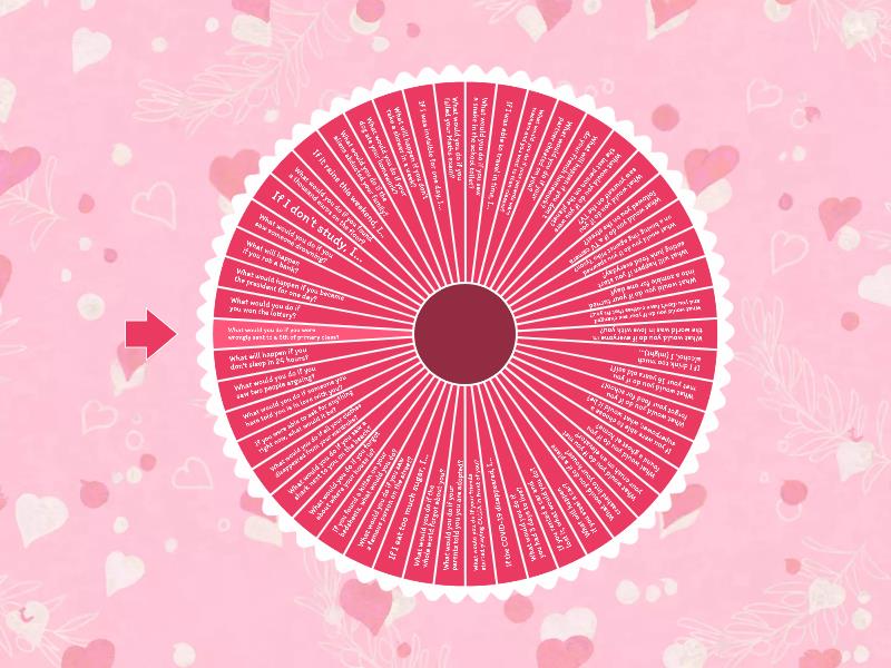 What would you do if you won the lottery?, What would happen if you became the president for one day?, What will happen if you rob a bank?, What would you do if you saw someone drowning?, If I don't study, I..., What would you do if you found a thousand euros on the floor?, If it rains this weekend, I..., What would you do if the aliens abducted your family?, What would you do if your dog ate your homework?, What will happen if you don't take a shower in a week?, If I was invisible for one day, I..., What would you do if you failed your Maths exam?, What would you do if you saw a snake in the school toilet?, If I was able to travel in time, I..., What would you do if your parents were teachers and you went to their classes?, What would you do if your partner cheated on you?, What will happen if you don’t do your French homework?, What would you do if you were the last person on the planet?, What would you do if you saw yourself on the TV?, What would you do if a TV camera followed you on the street?, What would you do if you spawned on a boxing ring against Mike Tyson?, What will happen if you start eating junk food everyday?, What would you do if your turned into a zombie for one day?, What would you do if your sex changed and you didn't have clothes that fit you?, What would you do if everyone in the world was in love with you?, If I drink too much alcohol, I (might)..., What would you do if you met your 16 years old self?, What would you do if you forgot your food for school?, If you were able to choose a superpower, what would it be?, What would you do if you found a ghost at home?, What would you do if you met your crush on an elevator?, What would you do if a plane crashed into your house?, What will happen if you steal a car?, If you rented a car and lost it, what would you do?, What would you do if you had 3 days to live?, If the COVID-19 disappeared, I..., What would you do if your friends started playing OUIJA in front of you?, What would you do if your parents told you you are adopted?, What would you do if the whole world forgot about you?, If I eat too much sugar, I..., What would you do if you saw a famous person on the street?, If you found a kitten on your bedsheets, what would you do?, What would you do if you forgot about where your house is?, What would you do if you saw a shark next to you on the beach?, What would you do if all your clothes disappeared from your wardrobe?, If you were able to ask for anything right now, what would it be?, What would you do if someone you hate told you is in love with you?, What would you do if you saw two people arguing?, What will happen if you don't sleep in 24 hours?, What would you do if you were wrongly sent to a 6th of primary class?.