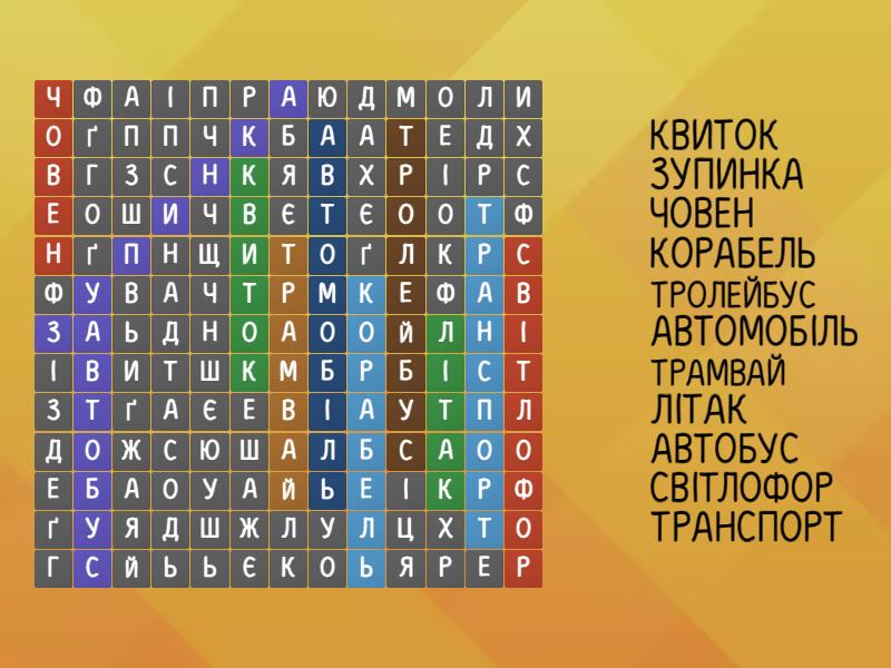 ЗНАЙДИ СЛОВО НА ТЕМУ ТРАНСПОРТ
