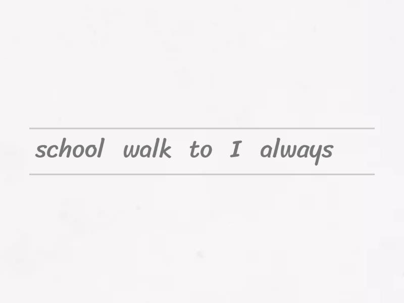 I always walk to school, Do you usually wear glasses?, I am hardly ever bored., She sometimes does homework., We hardly ever go to the cinema., Why are you always late?, My girlfriend is never stressed., Does it often rain in September?, What time do you usually get up?, Do you often drive to work?, I have a shower every day,