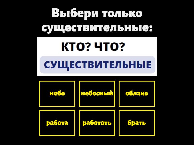 1) Выбери только существительные: a) небо b) небесный c) облако d) работа e) работать f) брать 2) Выбери строчку с однокоренными существительными: a) рыба, рыбак,рыбалка b) рыба, рыбный, рыбачить c) дом, домишко d) дом, домашний, домовой 3) Выбери только прилагательные: a) желток b) жёлтый c) чёрный d) чернеть e) чёрненький f) чернота 4) Выбери строчку с однокоренными прилагательными: a) жидкость, жидкий b) водный, водянистый c) соль, солёный d) солёный, солить 5) Выбери только глаголы: a) бегун b) бежать c) прыгать d) рисовал e) рисунок f) альбом 6) Выбери строчку с однокоренными глаголами: a) лить, пролить, вылить b) лейка, лить c) бежал, прибежать, выбежать d) сушка, сушить e) игра, играть f) играть, поиграть, выиграть 7) Выбери строчки, в которых все слова однокоренные: a) соль, солить, солёный b) водитель, водяной c) кот, котик, котёнок d) горе, гора e) море, морской, моряк f) мышка, мышонок, мышиный 8) Выбери строчки, в которых все слова однокоренные: a) гора, пригорок, горный b) кот, пёс, гитара c) музыка, музыкант d) ветер, ветерок e) дорога, шоссе f) сила, силач, сильный