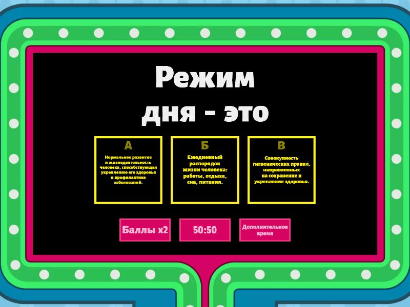 1) Режим дня - это a) Нормальное развитие и жизнедеятельность человека, способствующая укреплению его здоровья и профилактике заболеваний. b) Ежедневный распорядок жизни человека: работы, отдыха, сна, питания. c) Совокупность гигиенических правил, направленных на сохранение и укрепление здоровья. 2) Какая пища полезна для здоровья? a) Разнообразная пища b) Консервированные продукты, сласти c) Острая и жирная пища 3) Чем опасны грязь и пыль? a) Помогают восстановить силы b) Помогают побороть вредные привычки c) С грязью на волосах, одежде, обуви человека скапливаются бактерии 4) Почему важно чередовать труд и отдых? a) Для восстановления сил b) Для приобретения вредных привычек c) Для снижения работаспособности 5) Почему правильное питание важно для человека? a) Обеспечивает организм энергией, способствует его росту и развитию b) Вызывает болезни c) Ухудшает настроение