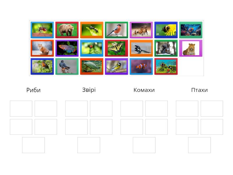 Риби: , , , , , Звірі: , , , , , Комахи: , , , , , Птахи: , , , , ,