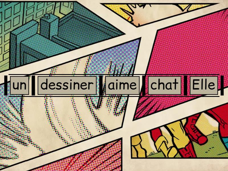 Tom mange une pomme, Nina n'aime pas les bananes, Luc aime nager , Maman n'aime pas manger les poires , J'aime dessiner un lapin, Elle aime dessiner un chat, Je dessine un chien, Chloé regarde la télé, Chloé saute sur le trampoline, Enzo ne saute pas sur le trampoline,